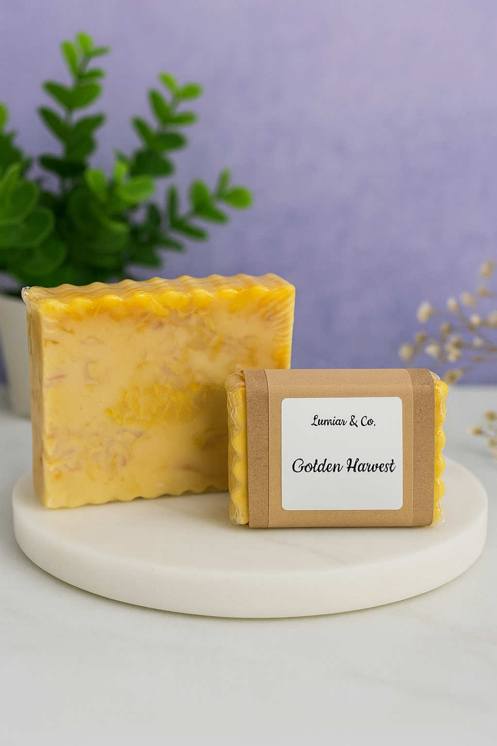 A gentle, golden bar that feels like sunshine for the skin. Its creamy texture cleanses softly while promoting balance and calm. Warm tones and delicate petals create a touch of natural elegance, leaving your skin smooth, fresh, and beautifully cared for.